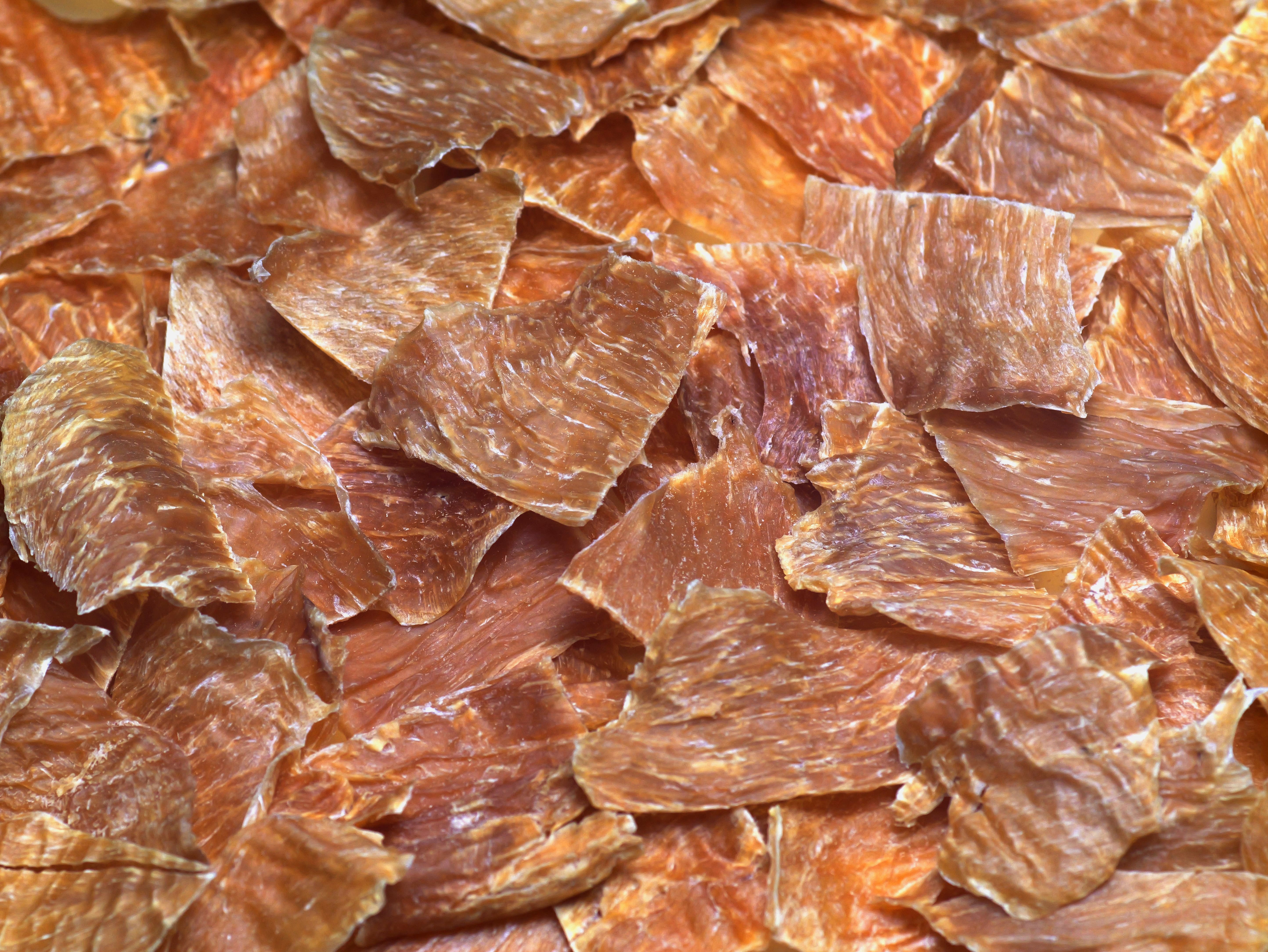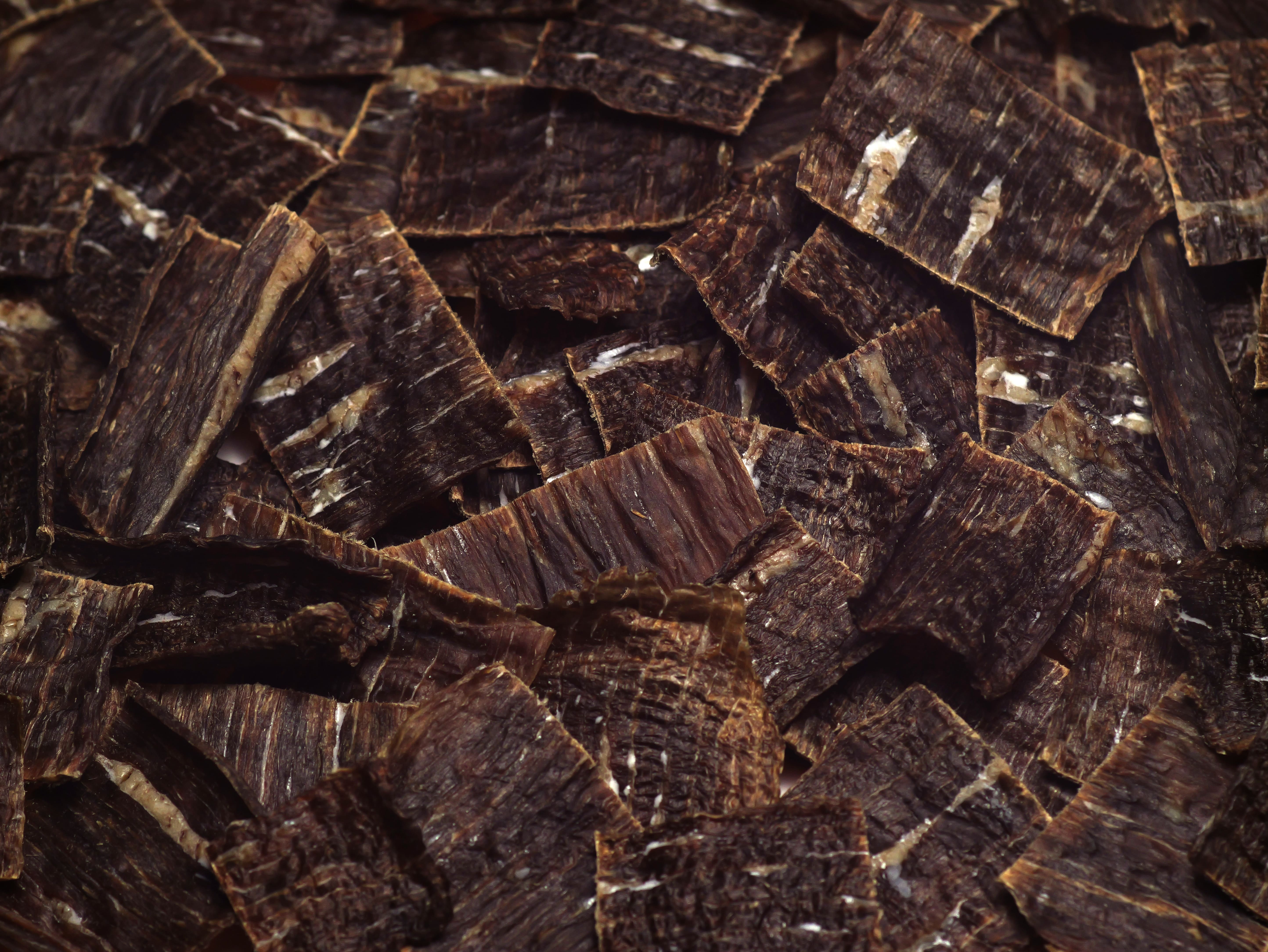 The texture depends on what protein it’s made of. Our dehydrated Chicken Breast tends to be more brittle where Steak and Pork Chop are more chewy.